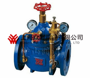 當閥門從進口端給水時,水流過針閥進入主閥控制室,并經過導閥、球閥流出主閥控制室到出口,此時主閥處于全開或浮動狀態。調定主閥上部的流量調節 閥,可為主閥設定一定開度。調節針閥開度和調節導閥彈簧壓力,即可使主閥開度保持在設定開度,并在壓力變化時導閥進行自動調節,保持流量不變。