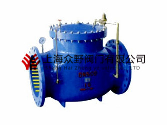 當閥門出 口壓力下降到導閥彈簧設定壓力時,導閥開啟,控制室向下游排水。由于導閥系統排水量大于針閥的進水量,主閥控制室壓力下降,進口壓力使主閥開啟。在穩定狀 態下,控制室進水、排水相同,主閥開度不變,減壓效果明顯。該閥性能穩定、安全可靠、安裝調節方便,使用壽命長。可用于生活給水、消防系統及工業給水系統。